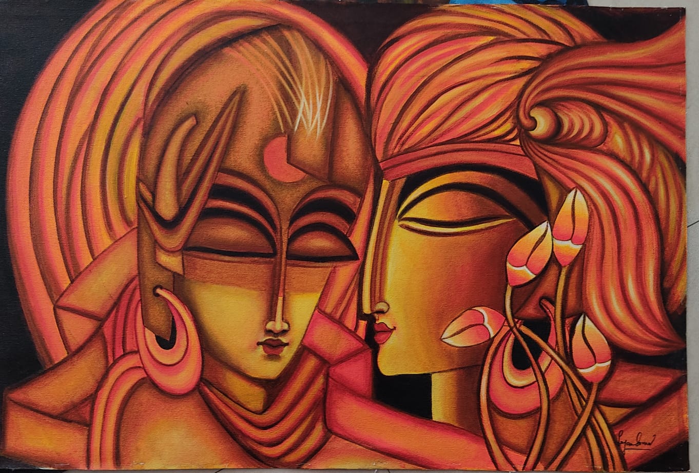 - Style: Abstract, Modern Indian Art, Spiritual, Contemporary Love Art.
